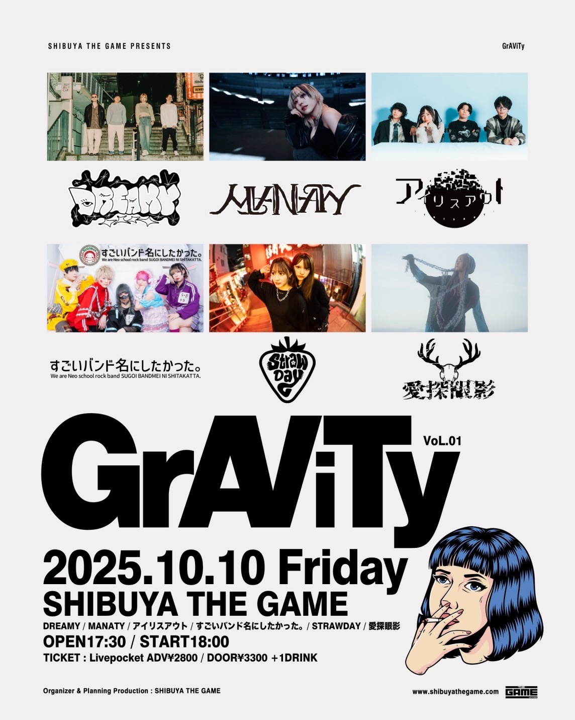 前売り¥2,500/当日¥3,000 +ドリンク代(¥700)
