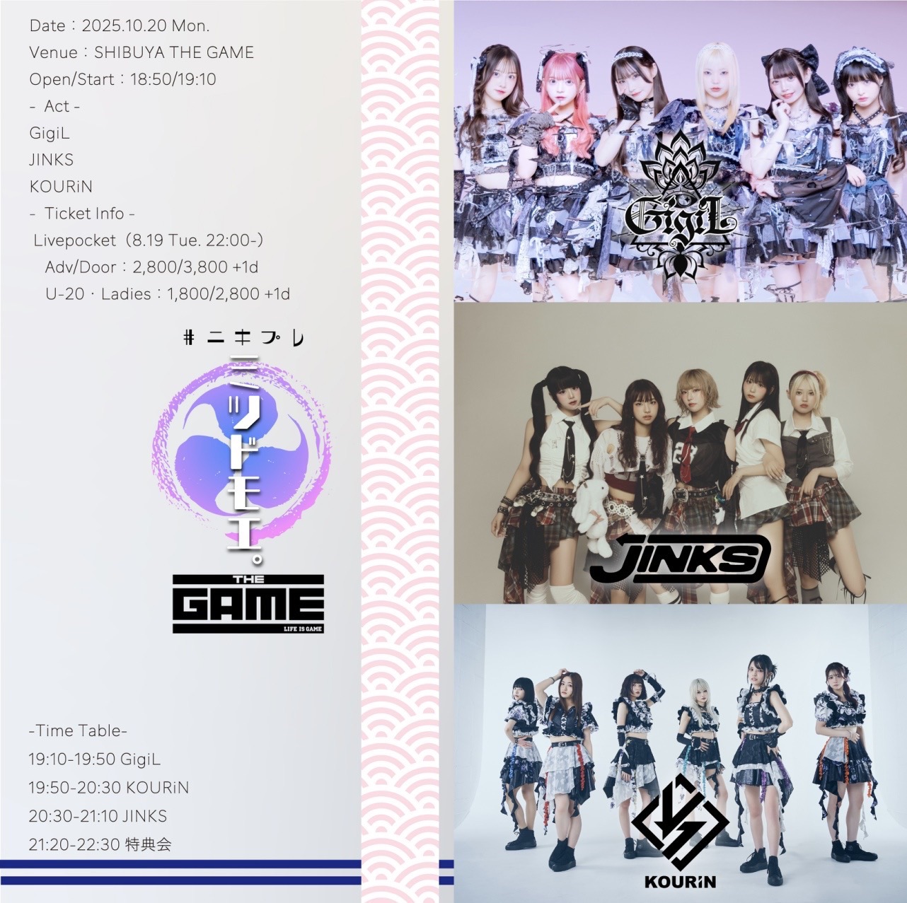 ※当日の特典会にてメンバー全員と囲みワイドチェキが撮影可能です