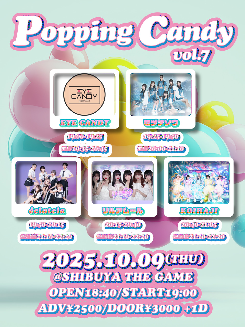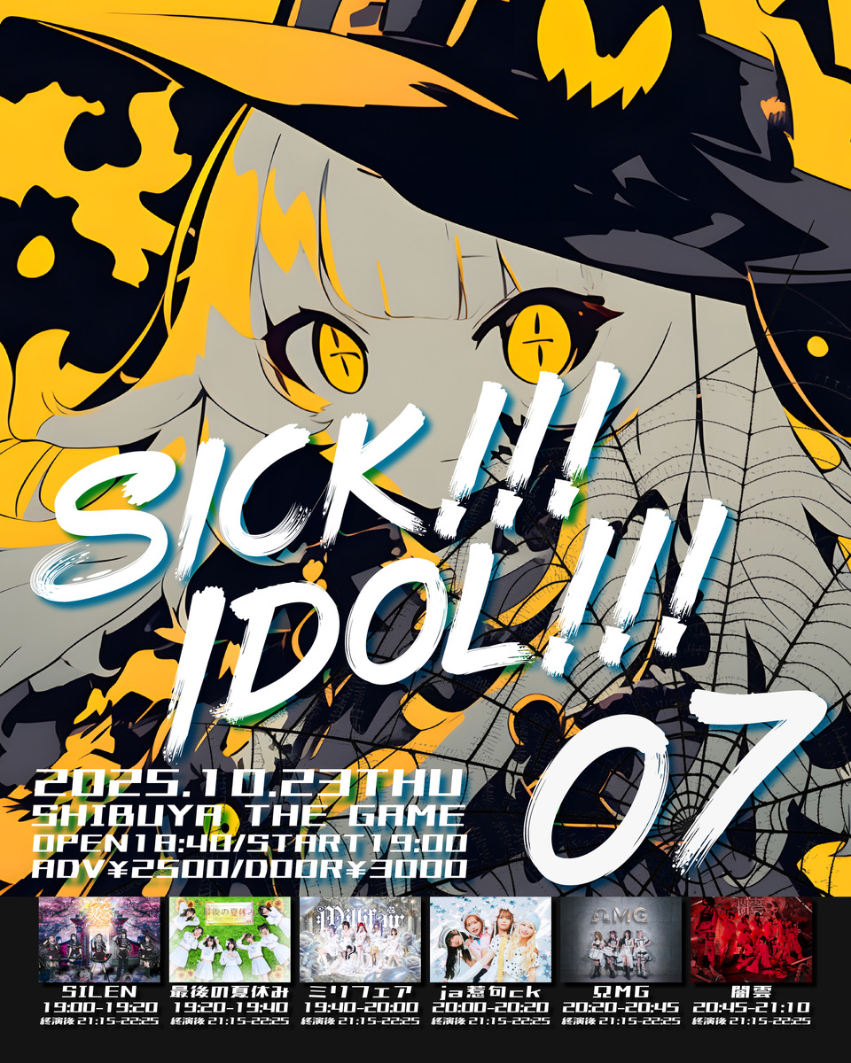 <第七弾出演者>あたまのなかは8ビット⁉ / EDEN / 仮面女子 / KITTIES / キプリスモルホォ / XINXIN / SUPER JYAPON / STARRY×NIGHT↗ / ちゃーむぽっしゅ / 夏空のオリオン / NEFRALISE / びっくえんじぇる / PrincessGarden-TOKYO / FULIT BOX / My_Stage / MEOWMEW / メノニューイヤー / ルージュブック / ROOKEY♡ROOKEYS / LilyS/ash