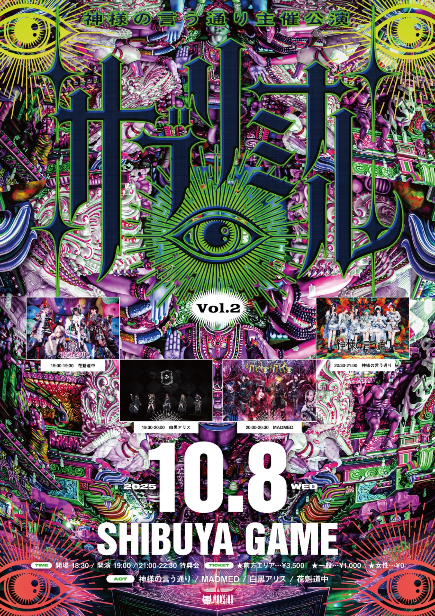 前売 前方¥3,000 / 一般¥2,000 / 女性¥1,000