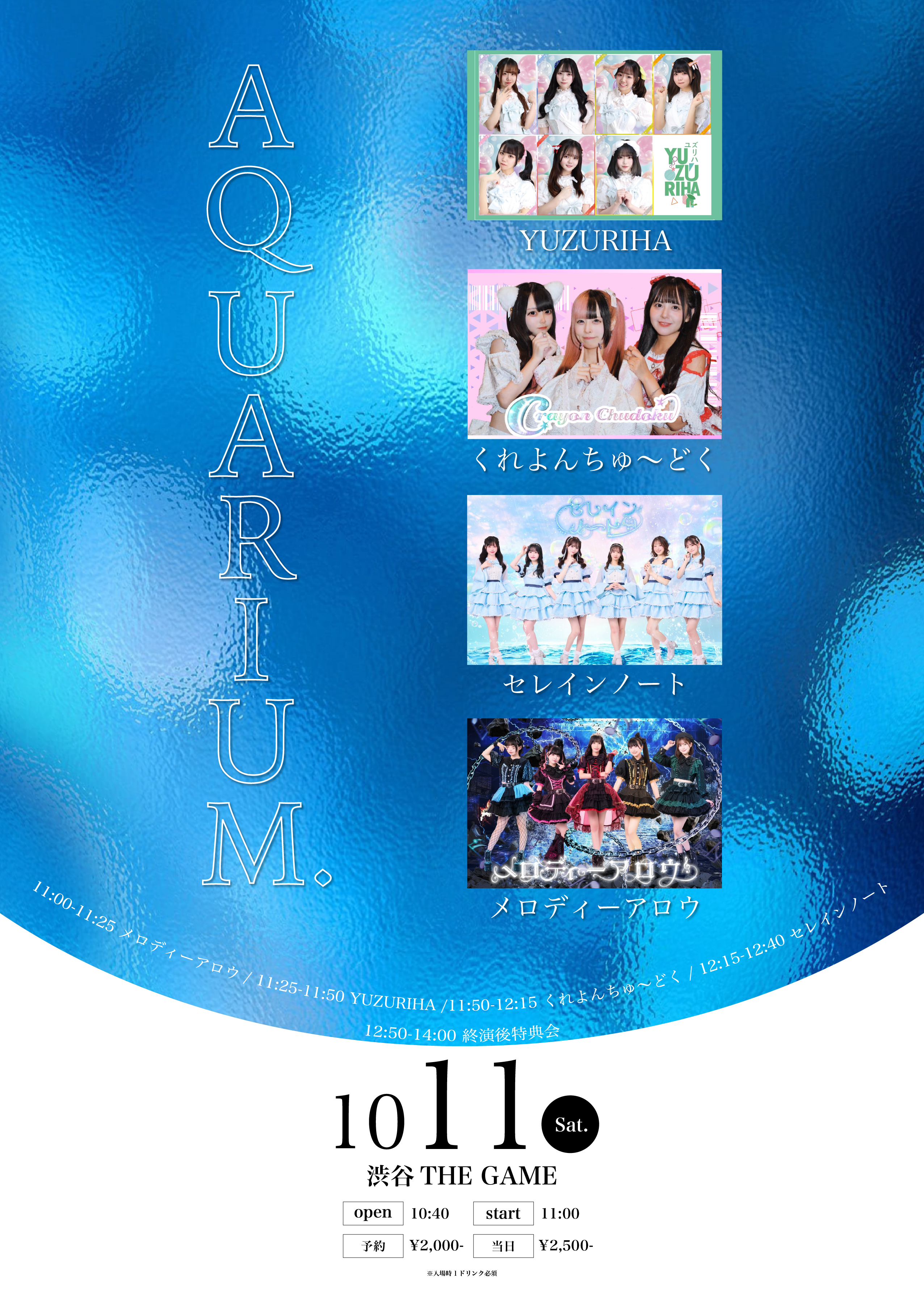 <最終出演者>兎アイズ / IQ99 / あいすなっつ / アイドル革命 / アイル / アンクライシス / Innocent Lucia / 恋セヨ乙女 / 恋に落ちる確率は限りなく低いが0じゃない / ソライロの涙 / 月に足跡を残した少女達は一体何を見たのか... / テラテラ / 天上天使 / Noi/Fen:D / 8°世界が変われば、 / HEARLATE / vVibe! / FandL / 文翠麗 / べるべっとセンテンス / 星合いのライラック / 真夜中のメリーゴーランド / MiX BeRRY / ミニスカポリス / MeltiaDoll / youmenosay / ラビットビット / Larmelia / RUN WiTH YOU / Replay / ろりぽっぷ!!!!!!!