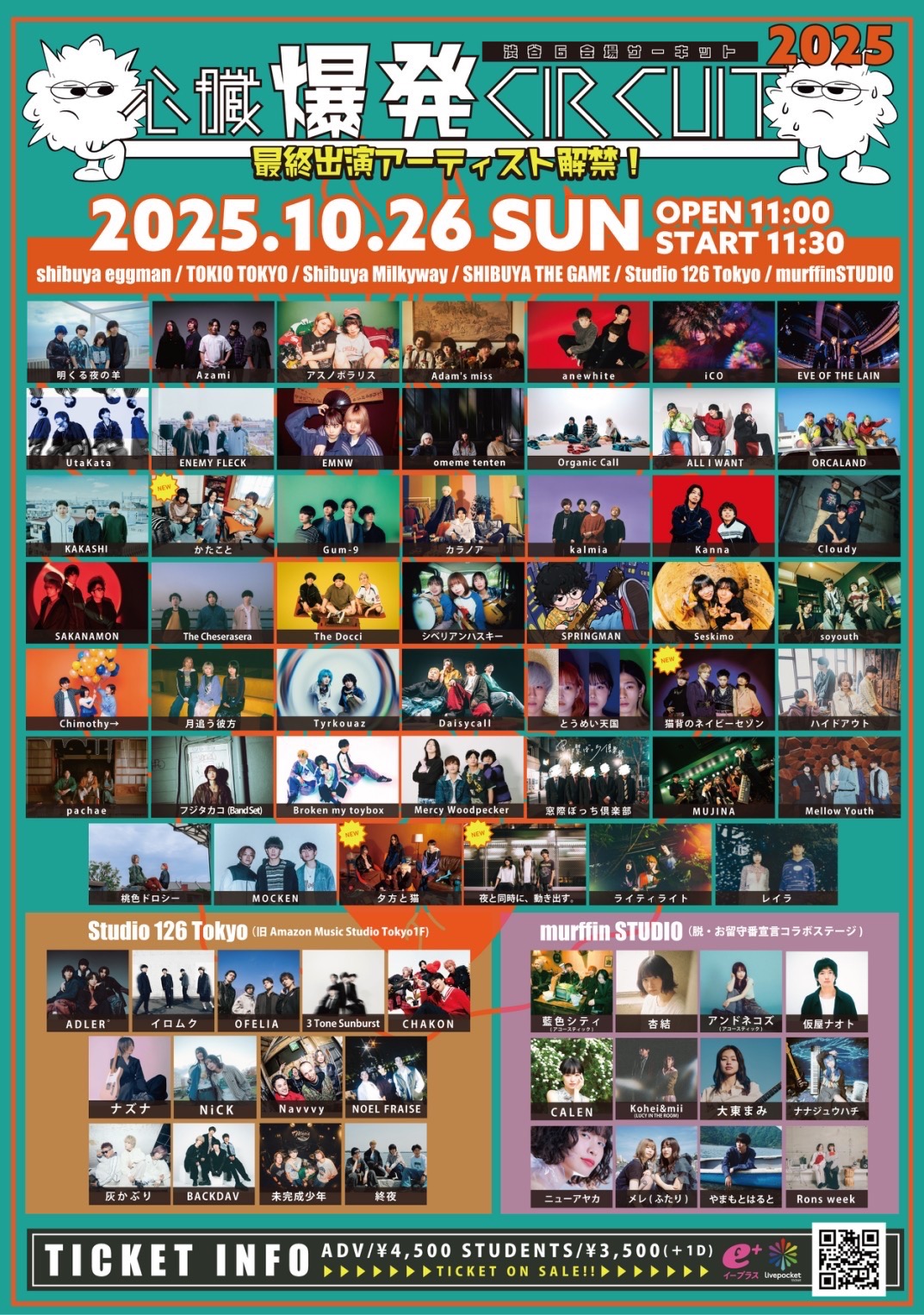<第四弾解禁アーティスト[ Studio 126 Tokyo出演] >ADLER゜/ イロムク / OFELIA / 3 Tone Sunburst / CHAKON / ナズナ / NiCK / Navvvy / NOEL FRAISE / 灰かぶり / BACKDAV / 未完成少年 / 終夜