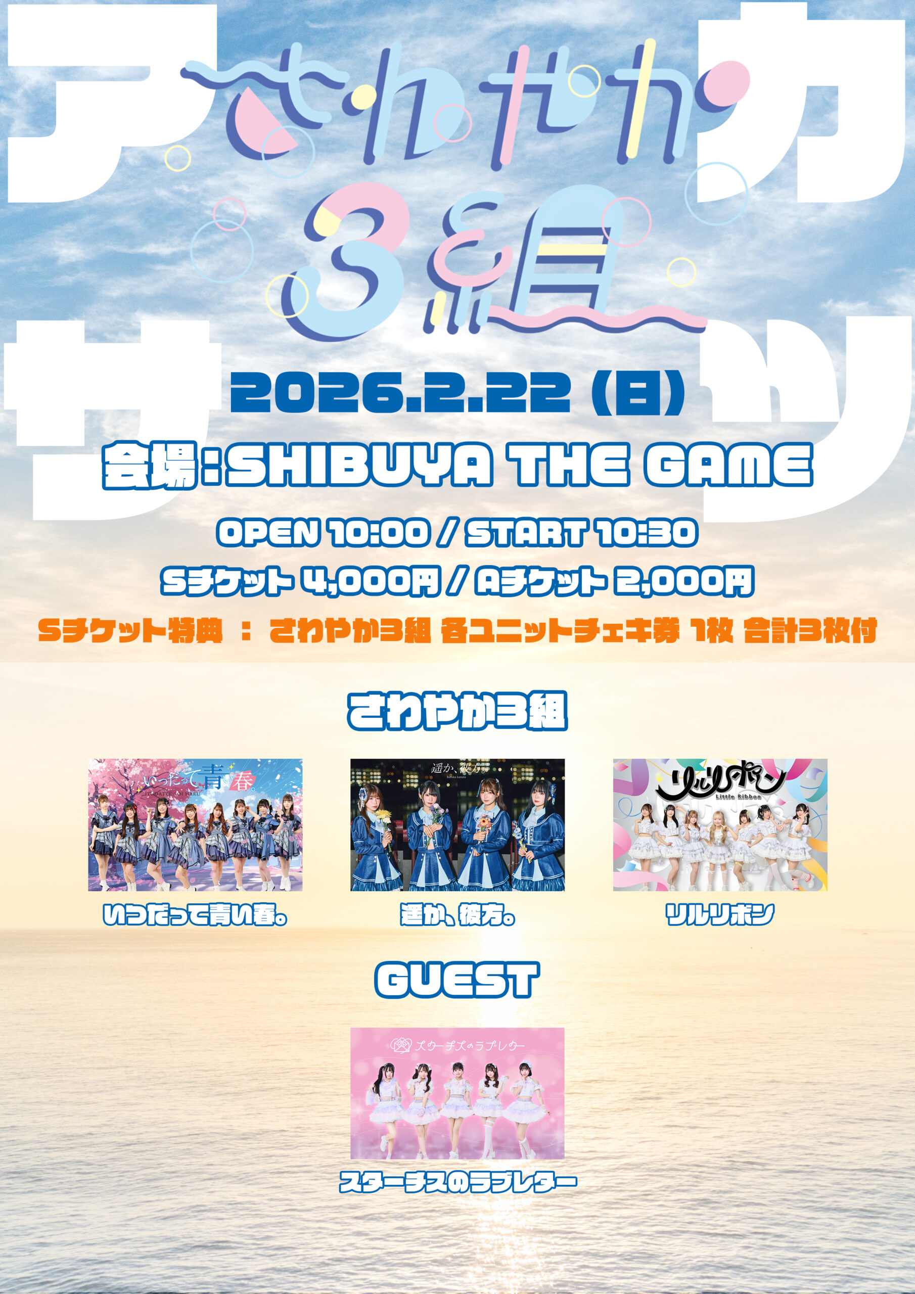 <第3弾出演者>アイドルカレッジ / I MY ME MINE / AZATOY / あまいものつめあわせ / 雨のち、ハレーション / KissBee / SAISON / selfish / 太陽と踊れ月夜に唄え / ちゃーむぽっしゅ / 虹色の飛行少女 / ネコプラpixx. / hakanai / Pastel Closet / フューチャーサイダー / BNSI / my fav / miao / metarium / ルルネージュ